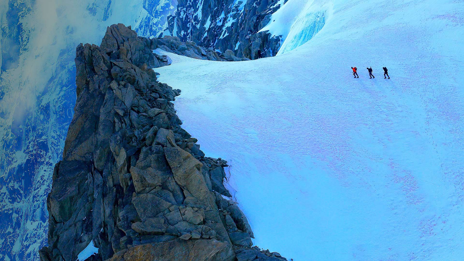 勃朗峰高山冰川上的徒步者,法国夏慕尼 (© agustavop/盖蒂图片社)