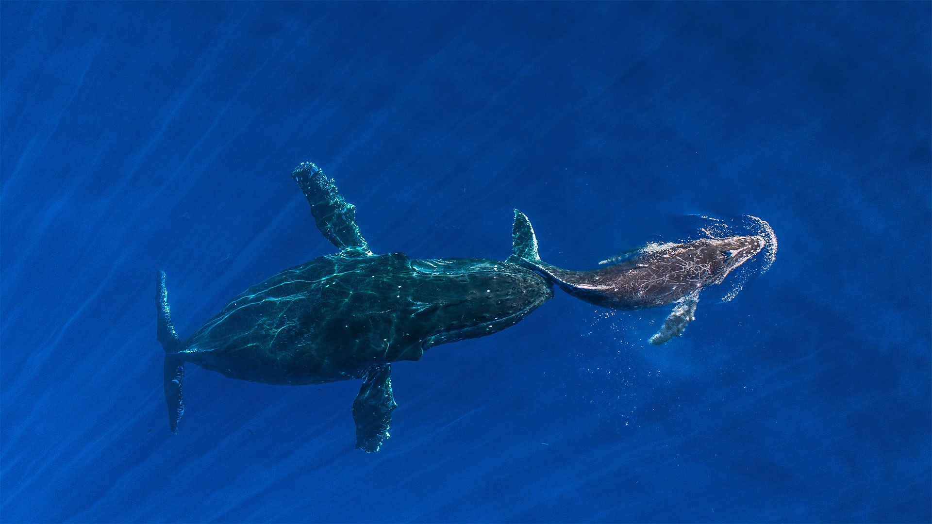 座头鲸 mother pushes her sleeping calf to the surface
