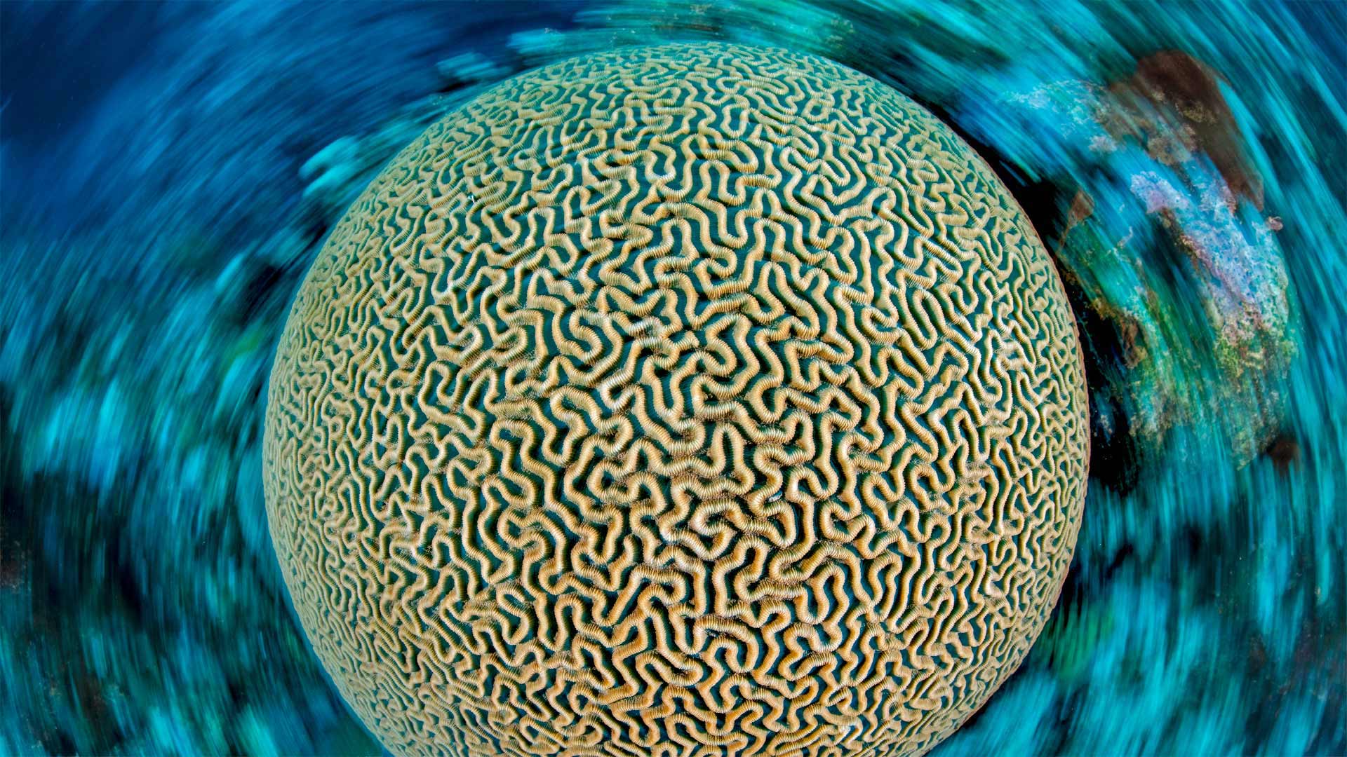 Symmetrical brain coral on a reef in the Caribbean Sea near Grand Cayman, Cayman Islands (© Alex Mustard/Minden Pictures)