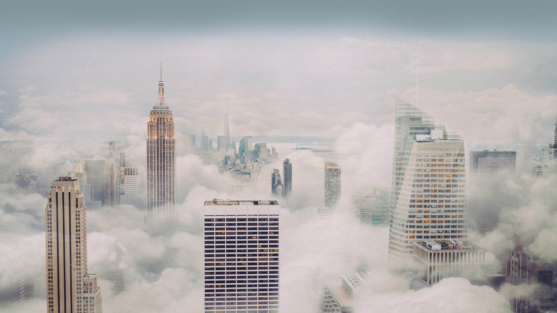 纽约市 skyline in fog (© Orbon Alija/盖蒂图片社)
