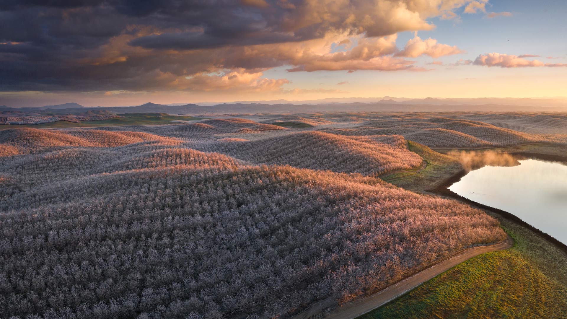 Almond trees in full bloom, 加利福尼亚州 (© Jeffrey Lewis/Tandem Stills + Motion)